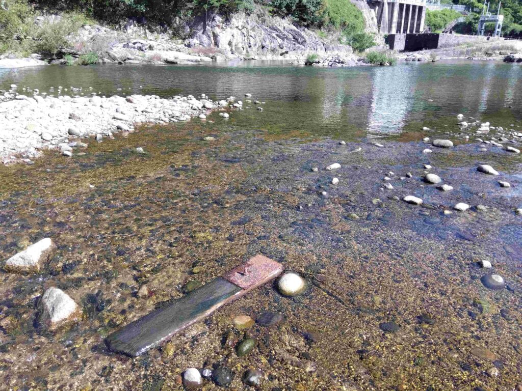 ※左記写真の川の中に落ちている板が”決しゃ版”です。