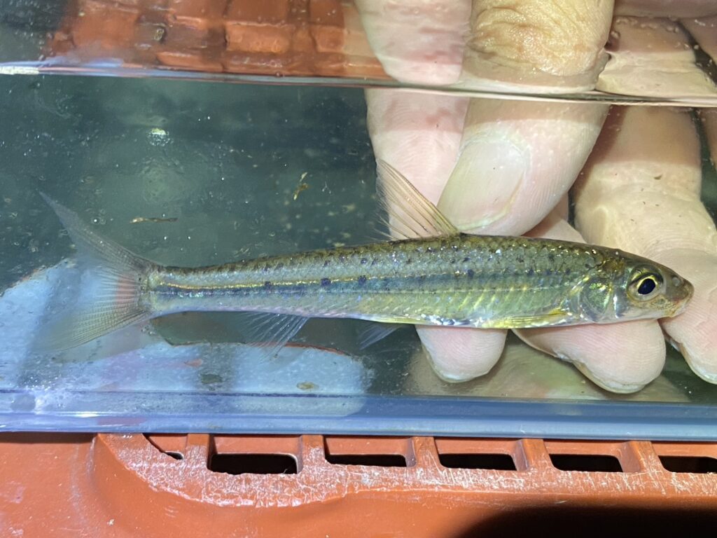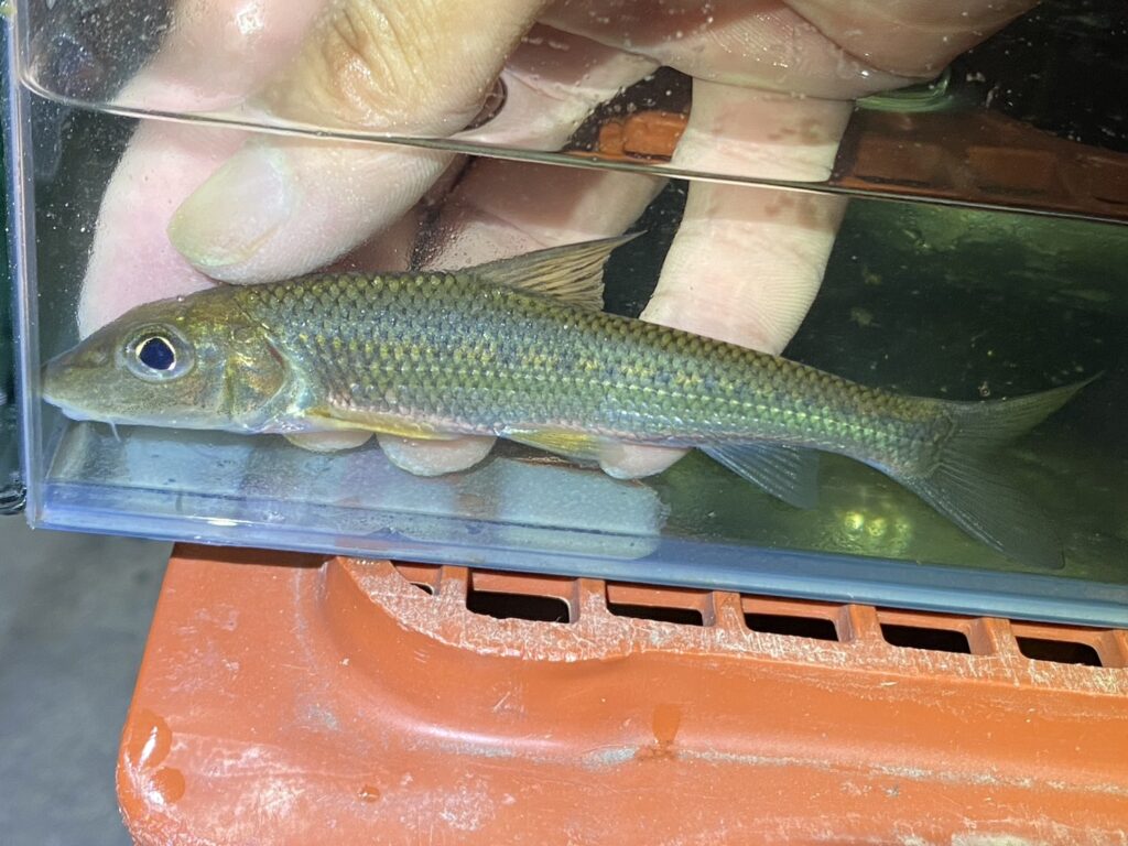 11月21日に笠置キャンプ場受付横の白砂川でモロコを釣られた釣果情報を受けて、組合スタッフが11月22日にモロコ釣りのテストしました。釣行時間は10時~14時頃までですが、午前中は2匹のみ。午後から食い気が高まり、20匹弱の釣果となりました(他、カワムツ3匹)。