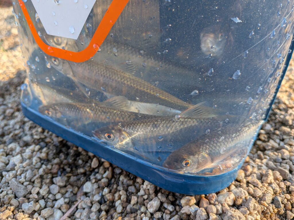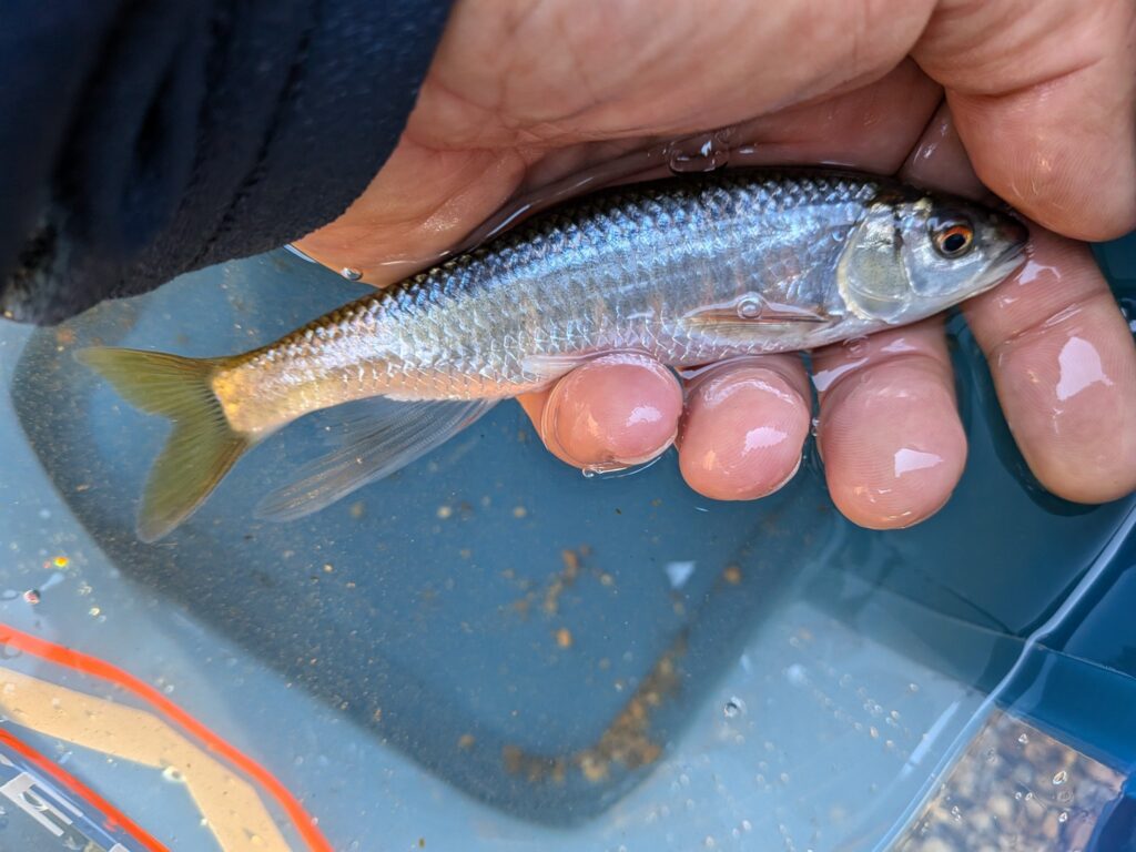 大河原恋路橋にて、寒バエ釣りのテスト。午前中2時間17匹、午後から2時間で4匹。