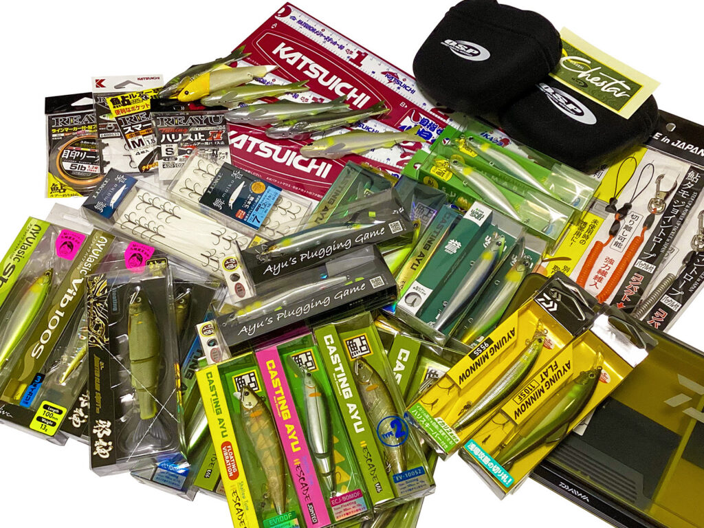 アユルアーに関するアンケートもあり、お答えいただいた方にはもれなく花札風デザインのアユステッカー(京都府内水面漁連オリジナルステッカー)をプレゼント。さらに、遊漁券(アユ年券18枚、アマゴ日券10枚)やアユルアーなど豪華景品が当たる抽選くじも引いていただけます。※アユのルアー釣りをしたことが無い方もアンケートにはご回答いただけます。