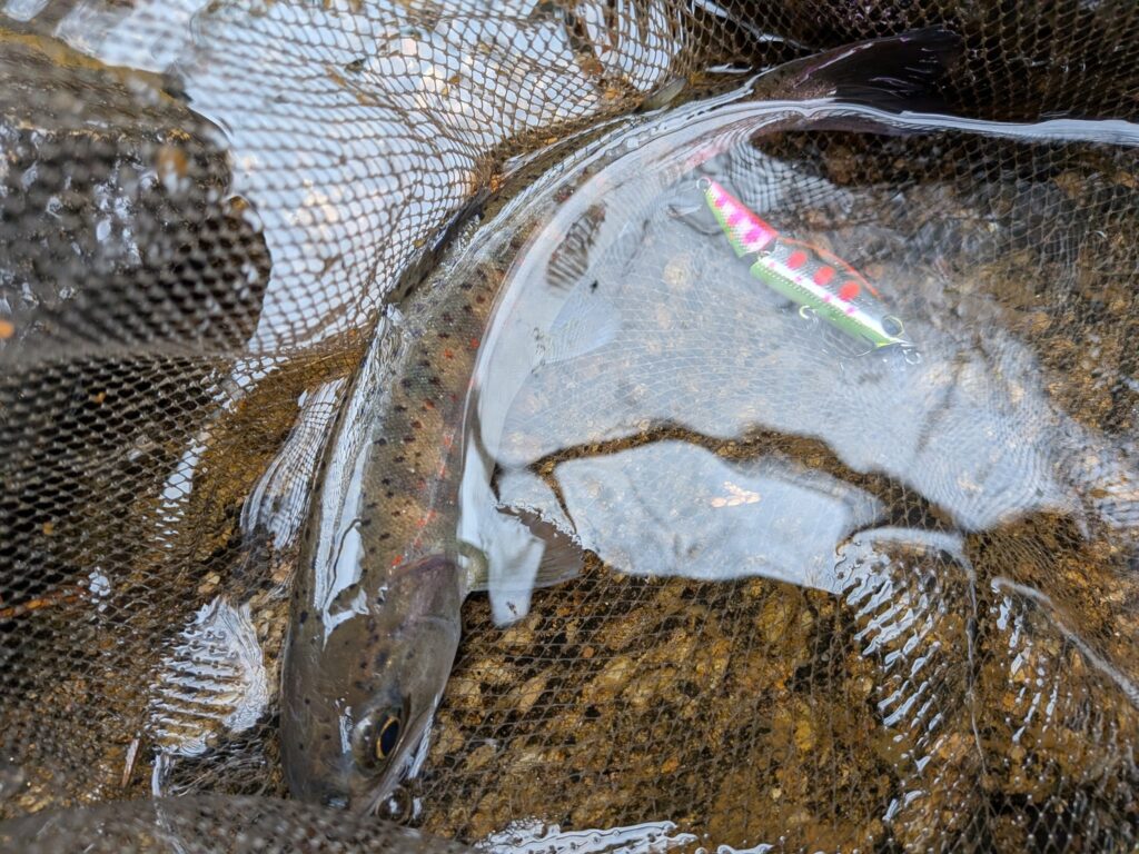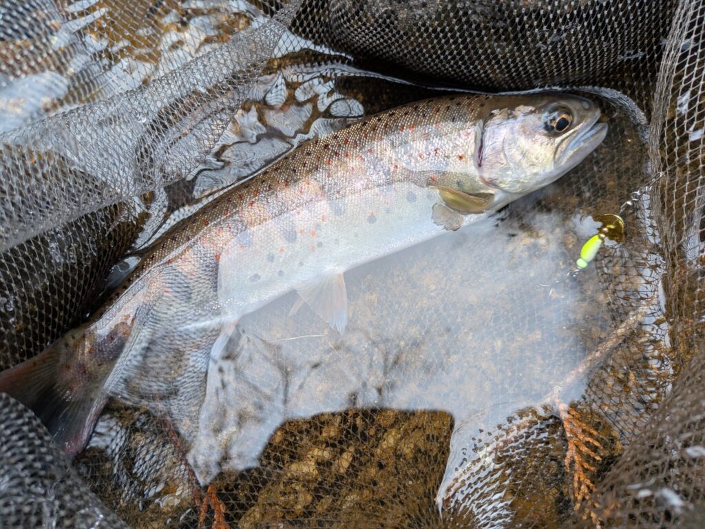 和束川上流の全域にアマゴが均等に行き渡ることを期待して放流量を配分しており、解禁当日、無人だった場所にも放流してあります。